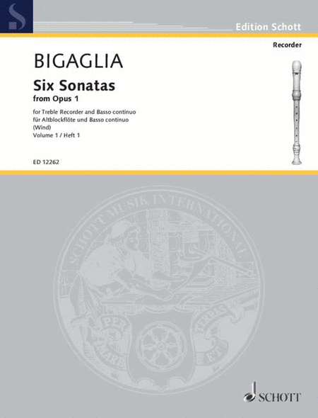 6 Sonatas Op. 1 Vol. 1 By Diogenio Bigaglia. Edited By Thiemo Wind. For Treble Recorder and Basso Continuo. Edition: Ed 12262. Recorder Music. Grade 3. [Paperback] Diogenio Bigaglia