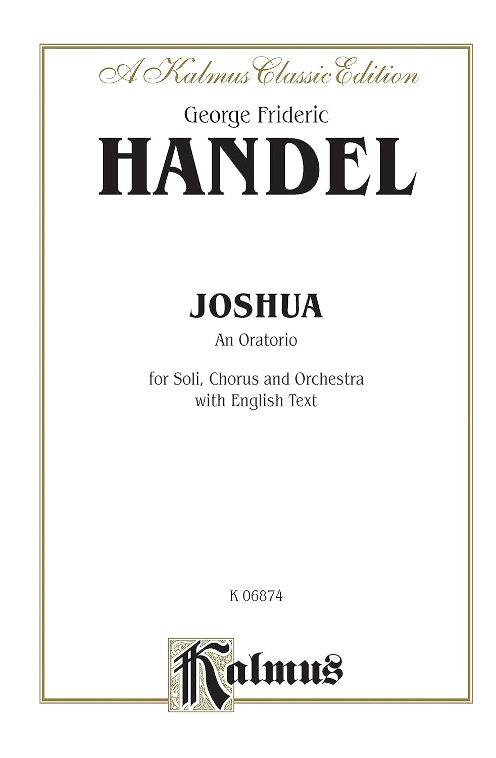 Joshua (1748): SATB with SSSSAATTBB Soli (Orch.) (English Language Edition), Vocal Score (Kalmus Edition) [Paperback] Handel, George Frideric