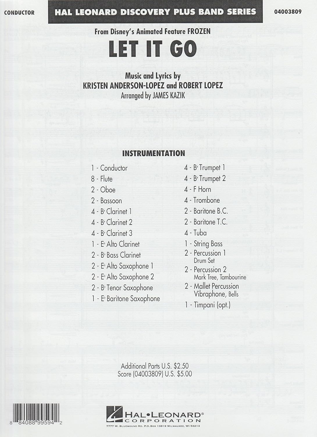 Let It Go (From “Frozen”). Series: Discovery Concert Band. Score. Composers: Kristen Anderson-lopez, Robert Lopez. Arranger: Johnnie Vinson. Level: 1.5. [Paperback] Robert Lopez Kristen Anderson-Lopez and Johnnie Vinson